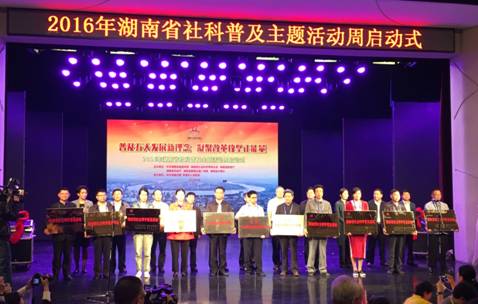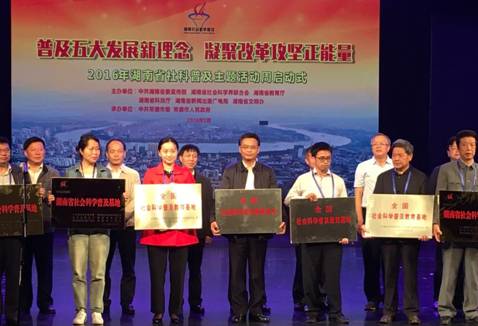 2016年5月9日,湖南省社会科学普及活动周启动仪式在常德举行。会上,湖南省委宣传部负责人通报获得“全国社会科学普及基地”名单,中南大学健康护理研究中心获此殊荣,湖南省共有四个基地获此荣誉称号,这也是中南大学获得的第一个全国社会科学普及基地。
