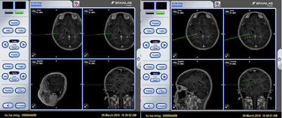 今年19岁的小刘,是一个刚退伍的陆军战士。他在入伍前偶有右侧肢体轻微无力,但通过在部队里通过刻苦训练,克服了右侧肢体无力的困难,并于2015年退伍后。哪知2016年1月以来,小刘感觉走路容易摔跤,爬楼梯时右脚跟上提困难,右侧肢体力量下降明显。在谈球吧附属肿瘤医院(湖南省肿瘤医院)神经外科的头颅MRI检查提示:小刘患有左侧丘脑中脑占位病变,考虑低级别胶质瘤。2016年3月9日,小刘在医院何正文团队的手术方案下成功切除这一神经外科中的“老大难”问题。