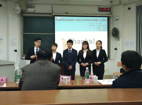 在众多参赛团队中,徐葛团队的《乌贼软骨源微载体——支架3D培养体系构建人工胰岛》实验设计获得了评委老师的青睐。当被问及为什么会将常见的乌贼和人工胰岛联系在一起时?徐葛表示,他们首先是注意到市面上的微载体常见成分有胶原、甲壳素,于是设想是否有一种生物体内同时含有此两种物质,若能找到则可以作为微载体的材料。碰巧的是,他们的老师在动物学课上提及了乌贼的特殊性。于是他们开始大量查阅文献,在查阅资料时他们意外地发现乌贼软骨源正好符合他们的设想,于是他们对乌贼展开研究,从乌贼软骨源上制备了微载体,并以此为创新点设计实验。评委老师对于此构想给予了肯定,特别对该团队将常见生物乌贼作为实验选材给予了赞赏。虽然实验还未完成,但老师们提出了如果此研究成功还可将其变成商业化进行大规模生产的可能性,这对选手来说是一种莫大的鼓励。