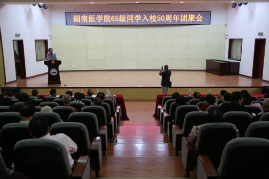 年近7旬的65级校友依然是神清气爽,其中不乏曾经在我国医疗、医学教育及医学科研领域作出突出贡献专家,国家级教学名师。上午9∶00,65级校友团聚会正式开始。会上,国家教学名师文继舫首先代表65级全体校友讲话,在讲话中对母校领导在校友返校团聚期间的支持与帮助表示感谢。副校长田勇泉代表学校致欢迎辞,在讲话中强调校友们在各自的岗位上为我国医疗卫生事业,对传承湘雅精神和文化作出的重要贡献,并希望校友们老有所为,老有所乐,晚年幸福、安康。65级校友王汉民主持会议。