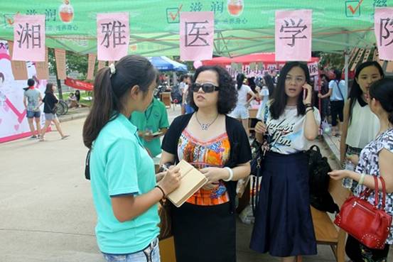 9月4日早上8时许,谈球吧2015级新生入学迎新活动在南校区展开,湘雅医学院迎新志愿者们穿着印有湘雅校徽的蓝绿色志愿者服,分别在升华公寓19栋、28栋和31栋楼下设立的迎新点处迎接新生。湘雅医学院党委副书记丁红珊、湘雅医学院学工办负责人、部分辅导员一同抵达迎新现场。