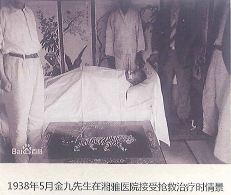 1937年日军蓄意发动“七七卢沟桥事变”,开始全面侵华战争后,民国政府积极安排金九等人于11月20日由南京驶往长沙。1938年元月1日,大韩民国临时政府以长沙城的楠木厅6号为指挥机关,进行抗日独立运动。1938年5月6日傍晚,临时政府要员会议在楠木厅6号厅举行,隐藏在机关内的韩奸突然向与会人员开枪。中枪后昏迷不醒的金九由长沙警备司令部急送湘雅医院抢救。蒋介石、张治中对此事高度关注,并送来了医药费湘雅医务人员的积极抢救和稳妥的后续治疗,使金九安然逃过了此劫,直到康复出院,继续领导韩国的独立运动。这是湘雅人凭借自身的仁心仁术于国际抗日战场上创造的医疗功绩,为中韩两国人民的反法西斯历史写下了不能忘却的一页。
