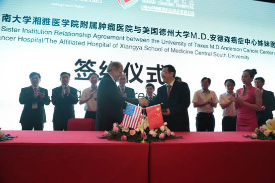 至此,湖南省肿瘤医院成为M.D.安德森癌症中心全球第31家、中国大陆地区第5家、中国中部地区第1家姊妹医院。