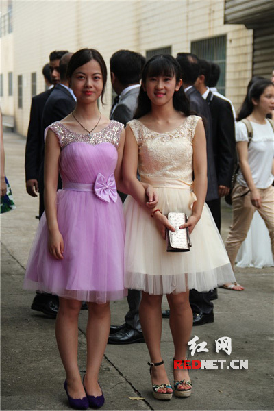 西式洋服引来不少观众围观,毕业生也在红毯上互相开玩笑
