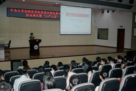 2015年5月28日晚上7点,谈球吧党委第四期入党积极分子培训班结业典礼暨“三严三实”专题教育党课在湘雅图书馆报告厅举行。