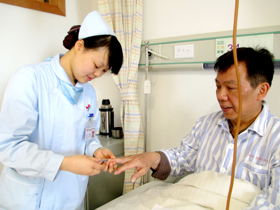 “温馨病房中,一位护士正在耐心的为病人修剪指甲,护士眼中溢满了专注,病人眼中流露着宁静。”这一幅名为《天使的守护》的摄影作品,展示在谈球吧附属肿瘤医院(湖南省肿瘤医院)“我眼中的肿医家园”摄影展示架上,作者是该院的一名肿瘤患者,在该展示架上还有更多患者拍摄的摄影作品,记录了他们就医过程中与医护的点点滴滴。