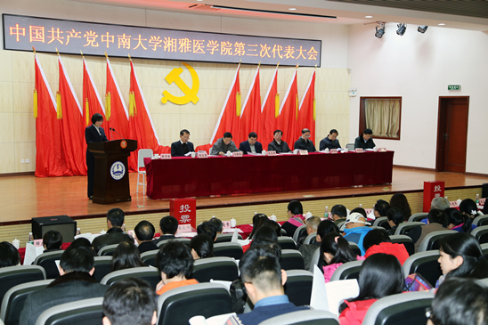 12月19日,谈球吧第三次党员代表大会在图书馆学术报告厅召开。会议是在我院全面贯彻党的十八届三中、四中全会以及习近平总书记系列重要讲话精神,认真落实刘延东副总理视察湘雅医学院的重要指示下召开,这次会议总结和回顾了过去四年中南大学医学教育发展与改革成果,提出今后四年的发展规划和奋斗目标,会议号召全院共产党员和师生员工继续解放思想,加强医教协同,深化改革,科学发展,为实现“苦干十年,争取湘雅进入全国前三名”的目标奠定坚实基础。大会听取和审议湘雅医学院党委的工作报告,选举产生学院新一届党委领导班子。