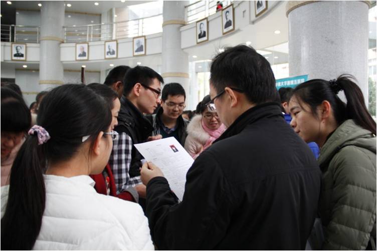 本次见面会从上午9:00持续到下午16:30。见面会未开始时,就有毕业生手持简历在一旁等候,随后在工作人员的指导下有序入场。大批的参会者使许多教室人满为患,但由于前期准备工作充分,整个会场指引到位,井然有序,湘雅医学院党委副书记丁红珊也亲临现场指导见面会工作。