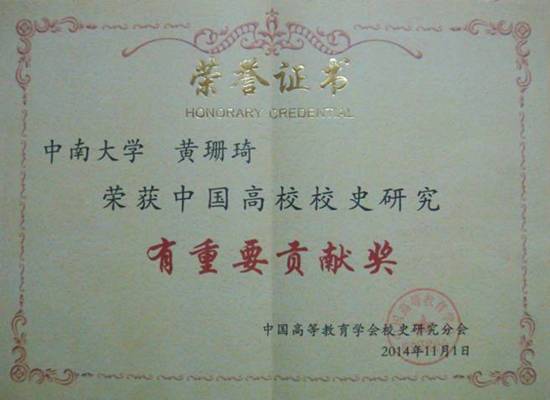中南大学黄珊琦荣获中国高校校史研究重要贡献奖
