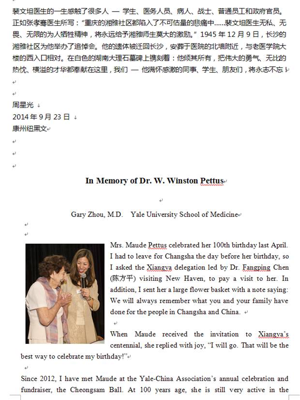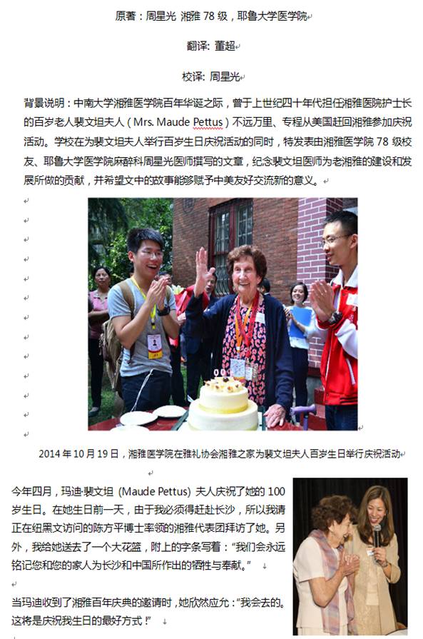 湘雅医院美国籍护士长玛迪女士喜迎100岁生日