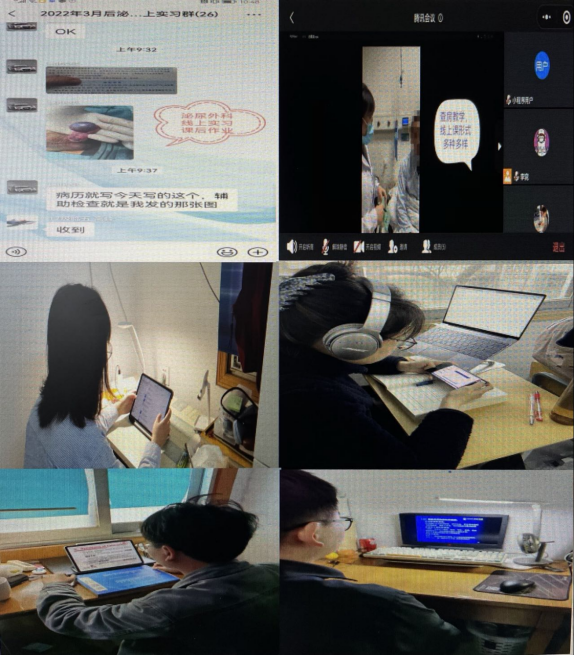 目前,医学口线上实习有585人,由于临床实习教学基地情况不一、学生分散到多个基地,临床教学基地防疫压力大,风险难于管控。实习教学转为线上教学后,仍以属地化管理、原地安排为原则,学生按实习轮转学科要求积极参加线上虚拟仿真临床训练,通过线上查房教学、线上实习课后作业等多种途径让学生享受线上教育的资源。线上教学督导到位,线上实习工作有步骤、高效率推进。