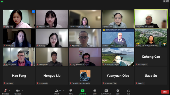 陈育庆教授首先致欢迎词,欢迎各位教授、老师及学生参会,并宣布会议正式开始。吴晓创副院长代表谈球吧感谢密歇根大学医学院对合作项目的大力支持,并特别感谢陈育庆教授和密大医学全球合作办公室的老师们在帮助湘雅学生克服疫情困难、顺利赴美学习中所做的巨大努力,以及密大导师对湘雅学生的专业指导,同时也非常高兴湘雅学子能够在四个月的时间里迅速适应在美的新生活、新文化。随后,Kolars副院长表示非常期待学生的系列报告会,并感谢湘雅与密大医学院之间的相互信任与友好合作,同时希望双方能继续深化合作、共促发展。