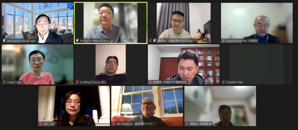 4月16日上午,湘雅校友学术论坛在线顺利举行,此次论坛由湘雅海外校友会主办,湘雅医学院、湘雅医院、湘雅二医院、湘雅三医院协办。中南大学副校长、湘雅二医院院长黎志宏,湘雅海外校友会会长谭建友,德克萨斯大学休斯顿医学院专家赵必红,湘雅海外校友会王亮、廖伟、巢卫等教授,湘雅医学院副院长吴晓创,湘雅医院、湘雅二医院、湘雅三医院病理科主任、国际合作办主任,湘雅医学院八年制学生等250余人线上参加论坛。谭建友会长主持会议。