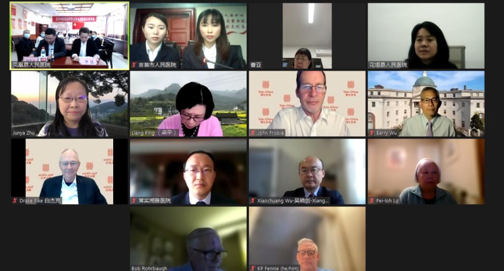 5月22日,美国雅礼协会和凤凰县人民医院共同举行第四届湘西贾氏奖学金卫生项目在线会议,会议主题为“农村老年人健康促进”。贾氏基金会首席运营官Pei-Loh Lo,美国雅礼协会主席Drake Pike、会长John Frisbie、健康委员会主席Barry Wu、前主席Ping Liang,耶鲁大学医学院副院长Bob Rohrbaugh、耶鲁大学公共卫生学院副院长Mayur Desai,谈球吧党委书记常实、副院长吴晓创,凤凰县卫生健康局局长冯传良、凤凰县人民医院院长罗新飞,以及湘雅系统和湘西地区的贾氏学者参会。