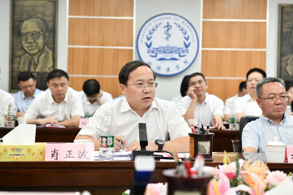 会上,湘雅医学院党委书记常实介绍中南大学医学领域高质量发展规划,长沙市第一医院院长王东波、株洲市中心医院院长蔡安烈、常德市第一人民医院院长邓志明分别介绍了其医院的十四五规划。会议就研究生招生新模式、学科建设、医疗大数据与生物样本库建设、政府对非直属附属医院经费的的投入计划等方面内容进行座谈交流。
