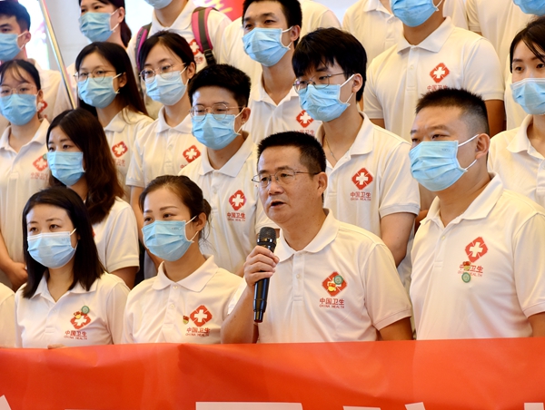 根据湖南省新冠疫情防控指挥部部署安排,中南大学湘雅二医院在内的9家医院和邵阳市派出的医疗队共501位队员组成湖南省援琼方舱医疗队,谈球吧常务副院长、湘雅二医院党委书记柴湘平担任湖南省援琼方舱医疗队总领队。湘雅二医院援琼方舱医疗队的51名队员中,共有9名医生,2名院感人员和40名护理人员。其中党员35人,占队员的近7成,年龄最大的53岁,年纪最小的不到22岁。