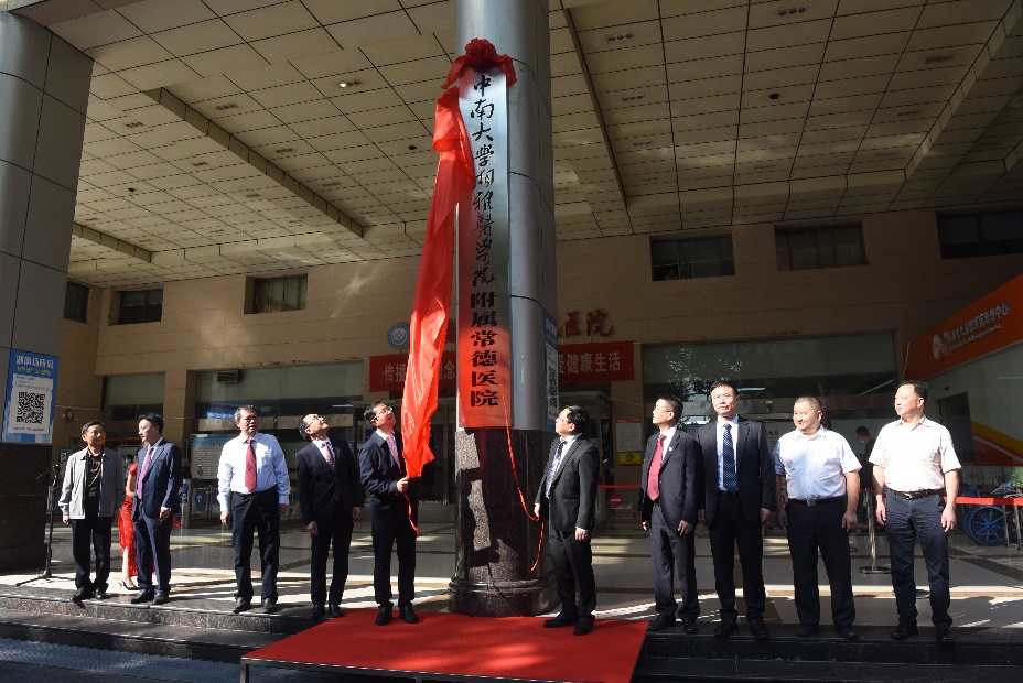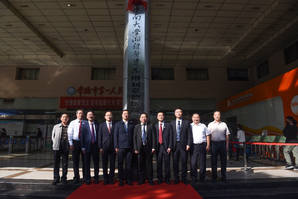 10月14日下午,谈球吧附属常德医院揭牌仪式在常德市第一人民医院门诊前坪举行。中南大学党委常委、副校长陈立章,湘雅医学院党委书记常实,湘雅医学院常务副院长、湘雅二医院党委书记柴湘平,湘雅医学院副院长、学校办公室副主任段绍斌,医院管理处副处长邓奇坚;常德市人民政府副市长谭丁,常德市卫健委党组成员、副主任曹学美,常德市第一人民医院党委书记向勇志参加揭牌仪式。常德市第一人民医院党委副书记、院长邓志明主持揭牌仪式。