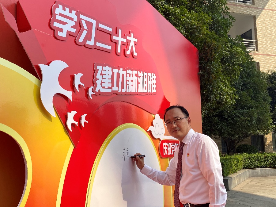 下午15时,院领导、各党支部书记、学生代表在图书馆前坪举办“喜庆二十大”签名活动,在常实书记的带领下,各位师生纷纷在签名墙上签下自己的名字。在签下名字的同时,更将二十大的精神与“湘雅人”的使命放到了心中。