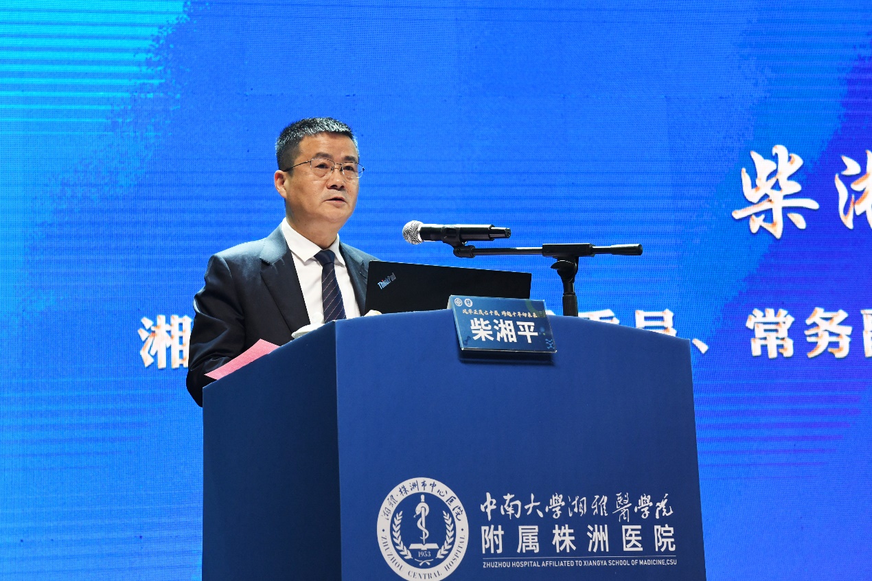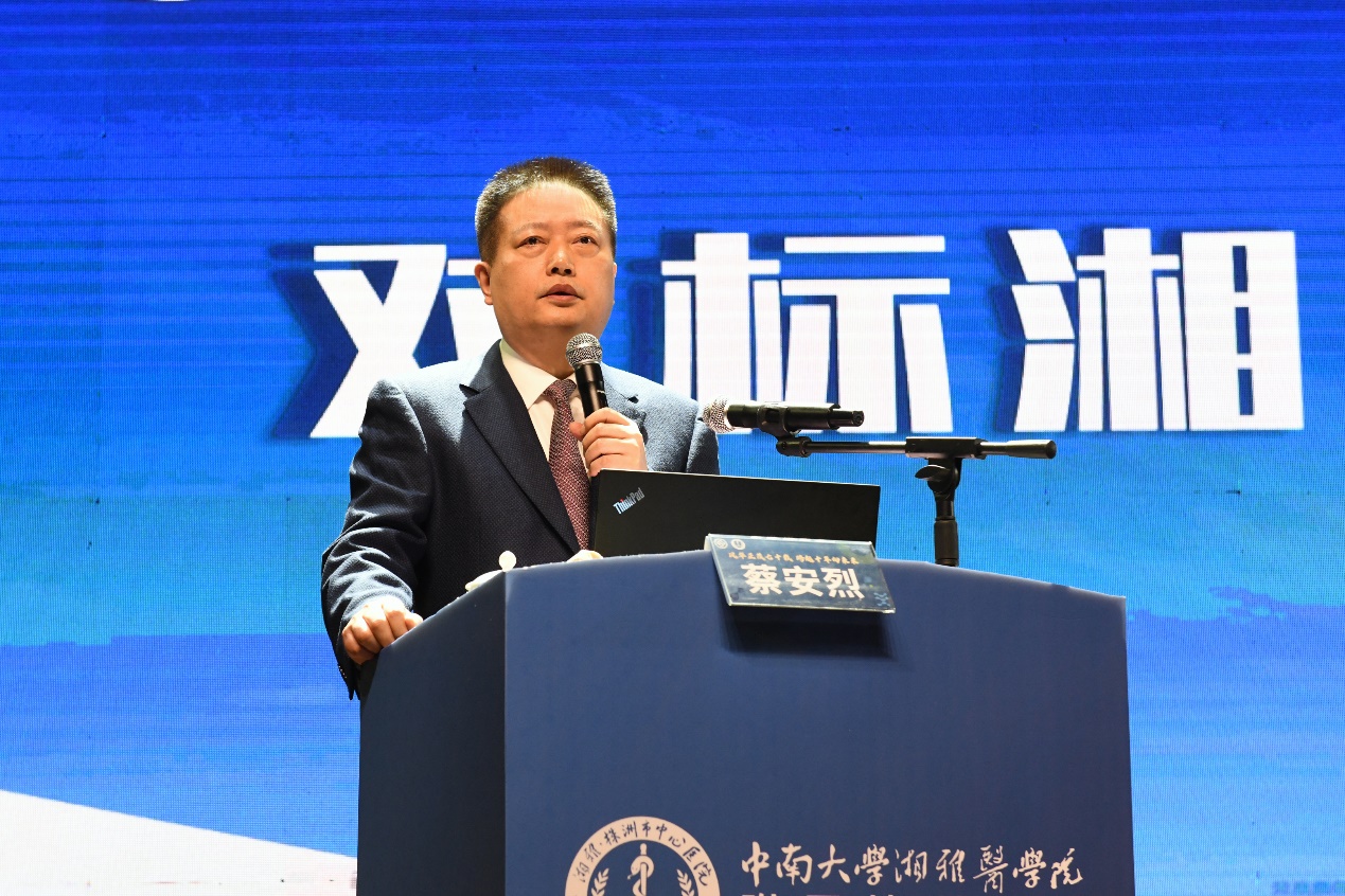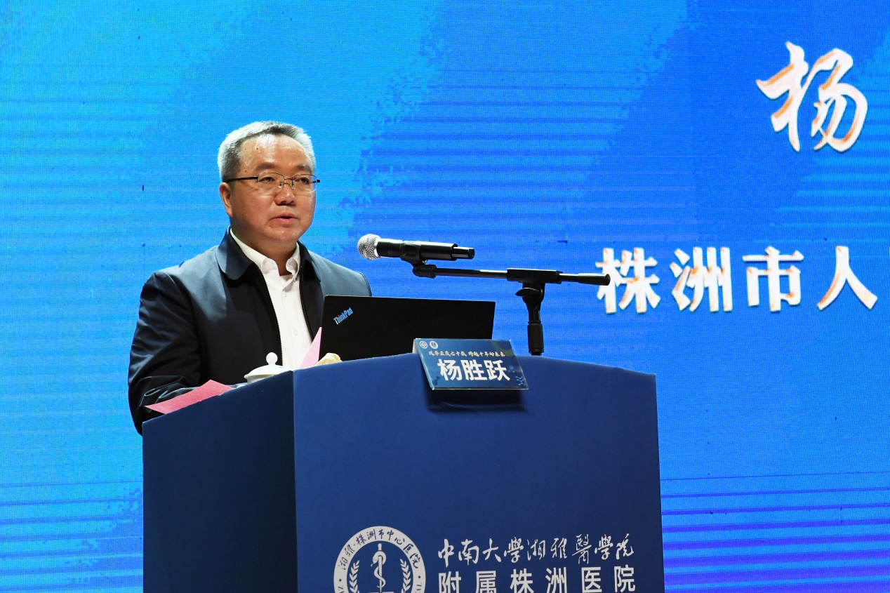 附属株洲医院院长蔡安烈在致辞中简单介绍了医院基本情况,向一直以来关注、关心医院建设和发展的中南大学、株洲市人民政府以及各级部门、各界人士表示感谢,并期待医院接下来在医院管理、学科建设、科研教学、人才培养、技术提升等方面与中南大学建立全方位、深层次的合作体系。