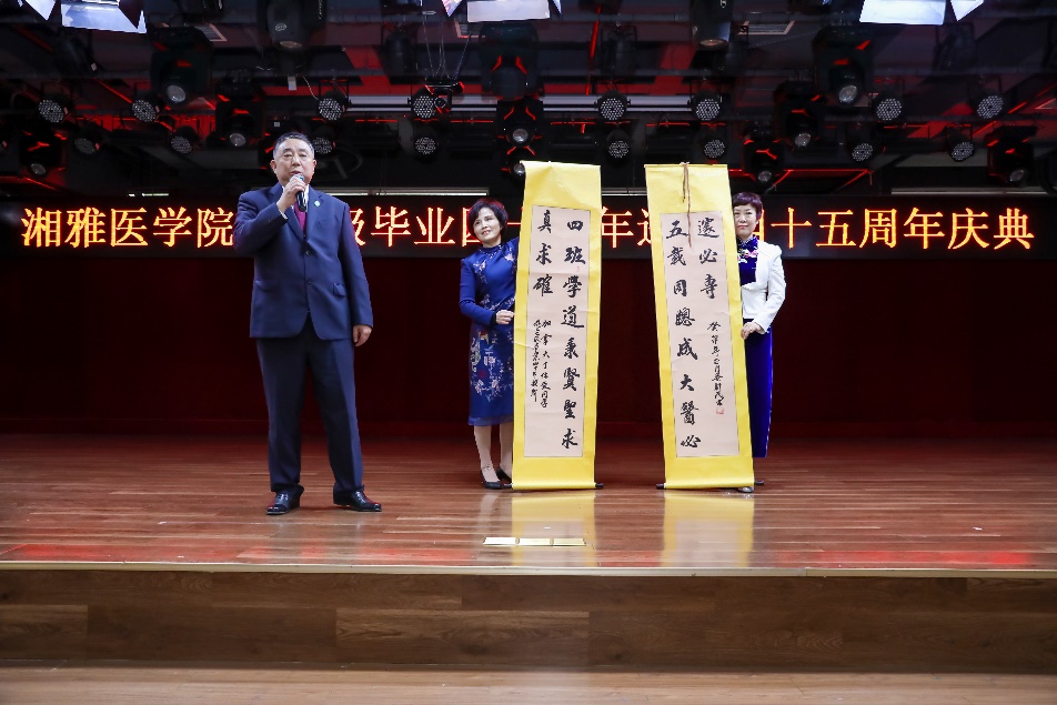 故地重游总是让人感慨万千,不免追忆自己的校园生活。一位七七级校友分享道,“自己总是记起那传道授业的课堂、那尘土飞扬的操场、那拥挤的学生食堂、那破旧的宿舍,虽然条件艰苦,但是他们在这校园专心听讲、锻炼早操、以组分餐、卧谈时事,这是激情燃烧的青春芳华”。远在加拿大的湘雅77级四班的丁校友也寄来书法作品寄托情谊——“四班学道秉贤圣求真求确,五载同窗成大医必邃必专”。