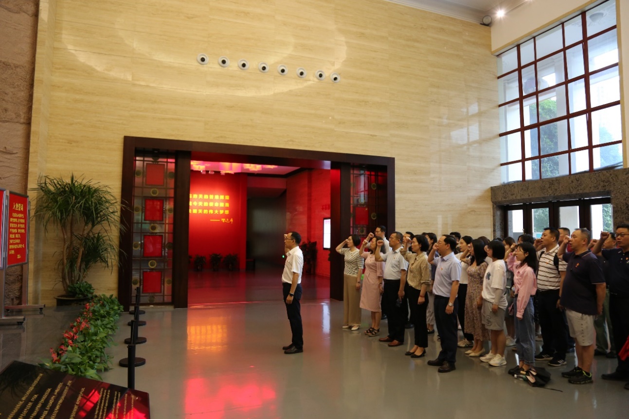 在长沙党史馆大厅的党旗前,在毛泽东、何叔衡赴会中共一大塑像前,全体参加活动党员同志重温入党誓词。在湘雅医学院党委书记常实的带领下,大家高举右手庄严宣誓,重温自己对党忠诚的誓言。在讲解员的带领下,大家参观了“长岛人歌动地诗”为主题的中共长沙历史陈列展,展览共分为“英勇卓绝的革命斗争、艰难奋进的社会主义建设、波澜壮阔的改革开放、阔步前行的中国特色社会主义新时代”等中国共产党四个阶段的光辉历史和辉煌成就。