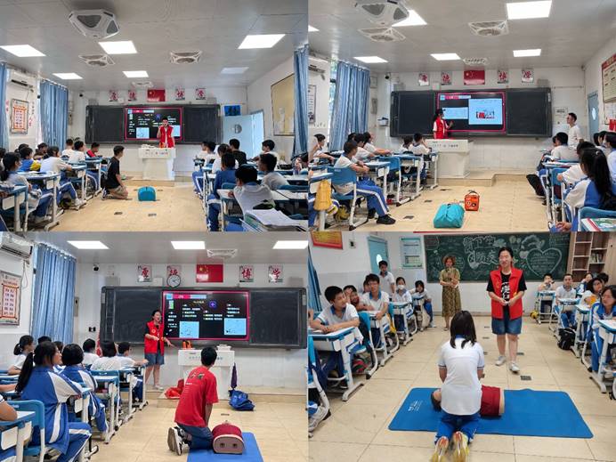 为了推进大中小学思想政治教育一体化建设,加快构建中南大学“大思政”格局,提升实践铸魂育人长效,谈球吧成立中南大学“健康湖湘·社会急救科普”暑期实践团,经过报名、初筛、面试、培训、考核等环节,最终遴选出34名成员在长沙市中小学开展急救宣讲活动。实践团成员陆续走进长沙麓山国际实验学校、中南大学第一附属中学、长沙市明德中学、长沙市长郡天心实验学校等学校,将急救知识技能引入校园,并纳入中小学生课外实践课程,为同学们普及应急救护知识技能,提高自救互救能力,帮助织就校园更严密的急救保护网。