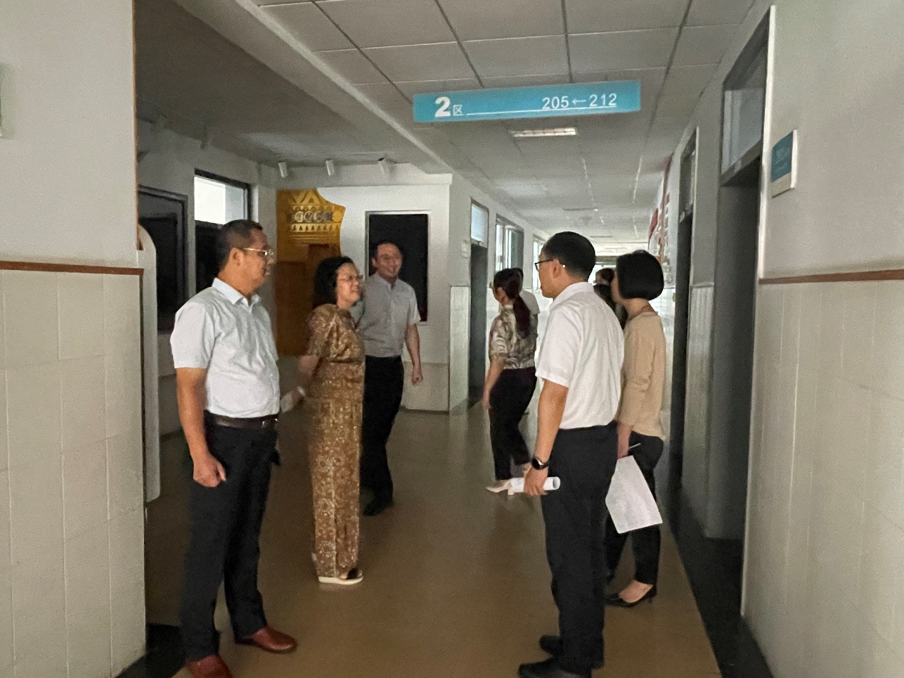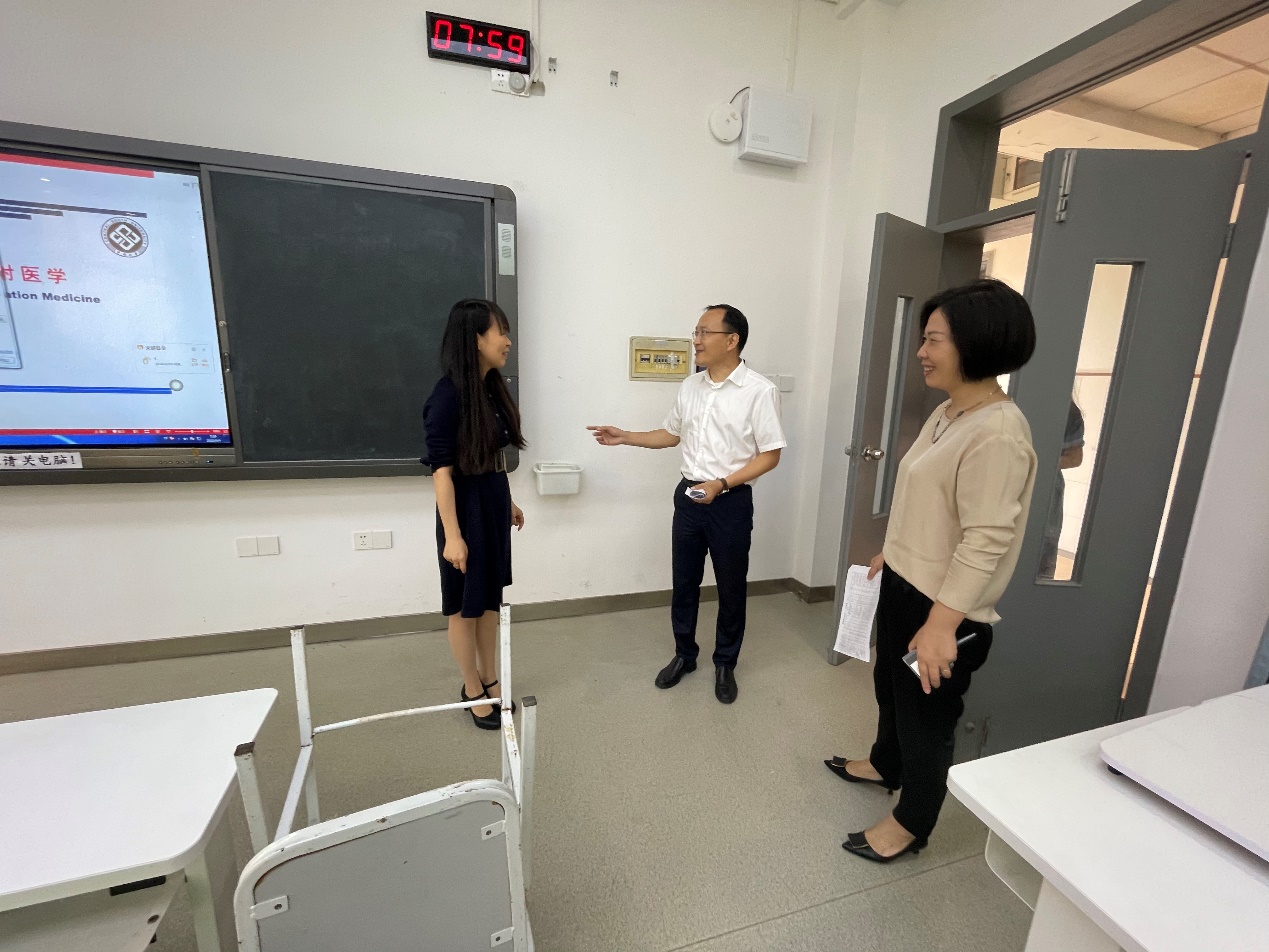 9月4日星期一上午7点45分,医学院院领导常实、丁红珊、陈俊香、胡平安,学工办主任冯虹及辅导员老师在湘雅新校区孝骞楼一楼大厅集合进行湘雅新校区新学期开学第一堂课查课。