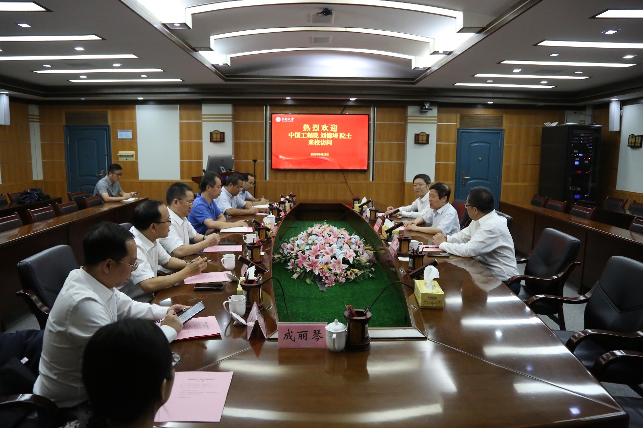 9月13日上午,中国工程院刘德培院士访问湘雅医学院,双方在孝骞楼八楼二会议室举行座谈。中南大学常务副校长、湘雅医学院院长陈翔、副校长黎志宏以及湘雅医学院、基础医学院、湘雅公共卫生学院、生命科学院等单位主要负责人参加了座谈。会议由黎志宏主持。