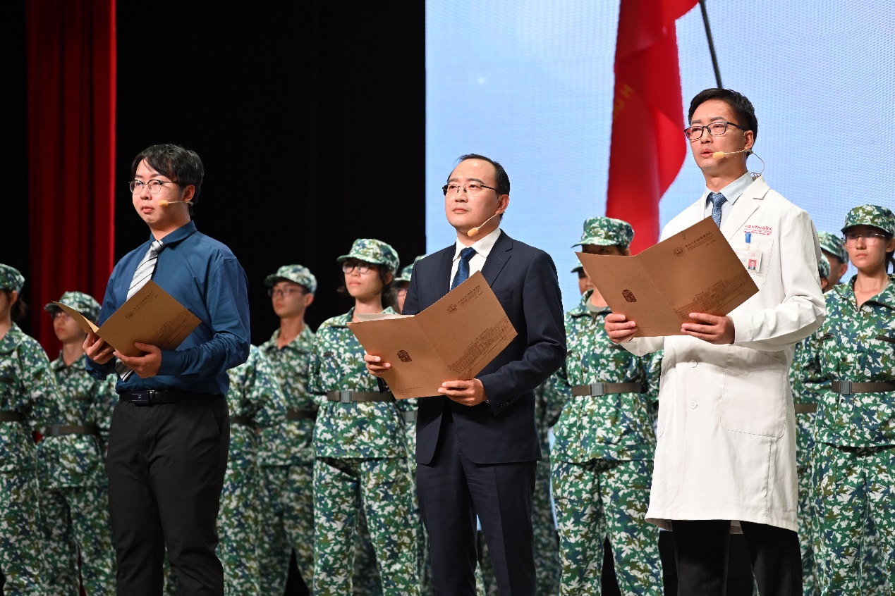 首先,黎志宏副校长发表讲话,和大家谈了做医者要有什么样的基础,做湘雅人要有什么样的特质。他结合湘雅历史阐述了百年湘雅的三大基因,即领人前行的“红色基因”、催人奋进的“卓越基因”、启人开拓的“国际基因”,并勉励同学们,永远高举飘扬的湘雅旗帜,传承三大基因,做新时代的湘雅接班人。随后,谈球吧临床医学五年制2317班程孝天同学作为新生代表,李吉教授作为教师代表上台发言。程孝天同学代表新生向各位领导、老师和学长学姐们表达衷心的感谢。他相信“选择湘雅,就是选择为祖国医药卫生事业奋斗终生”,湘雅的学生们都将踔厉奋发,勤奋学习,努力成为医德高尚、医术精湛的人民健康守护者和健康中国战略的领军人,以仁心仁术造福人民。李吉教授欢迎新生们进入湘雅,同时结合自己的宝贵经验强调了本科阶段学习的重要性,建议同学们培养好的学习习惯、生活习惯,能够“活到老,学到老”。在湘雅,有一大批像李吉教授一样的好老师,立足湘雅文化、践行医者仁心,深耕课程思政小课堂、致力于立德树人大作为!