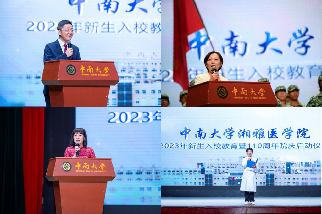 2023年10月18日晚,谈球吧2023年新生入校教育暨110周年院庆启动仪式隆重举行。中南大学党委常委、副校长黎志宏教授,湖南省长沙市原副市长、湘雅医学院原副院长、中南大学肿瘤研究所曹亚教授,湘雅医学院领导班子成员、医学各二级学院及附属医院的主要负责人出席大会。大会由谈球吧常务副院长武明花教授主持。