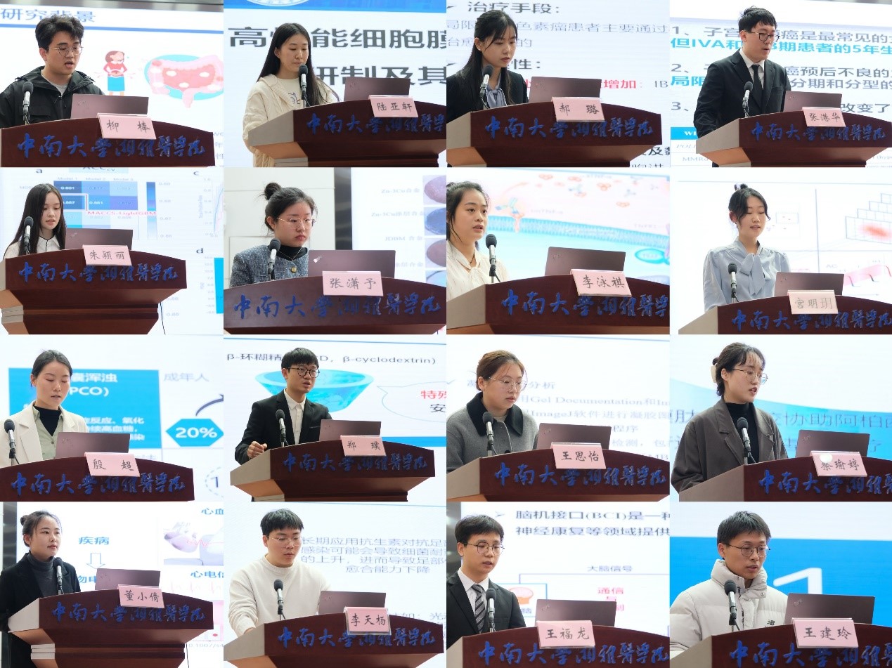 下午的研究生成果汇报环节由鲁文浩、水心雨、阳树森、毛珏怡、钱燊尔、黄尤柚、夏扬、严鲁哲8位研究生主持。此次论坛共收到来自中南大学、北京航空航天大学、华中科技大学、重庆医科大学、南华大学等高校研究生摘要投稿88份,经过初评选取了16份优秀且有代表性的摘要进行现场汇报并评比;同时,投稿墙报在会场进行展示和评比。