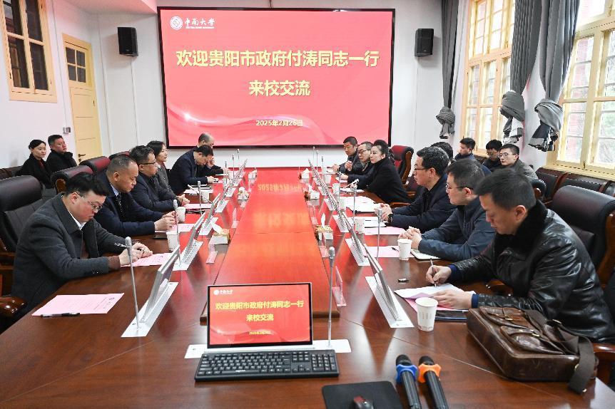 2月26日,贵阳市政府党组成员付涛率队来访交流。中南大学常务副校长、湘雅医学院院长、芙蓉实验室主任陈翔陪同调研。