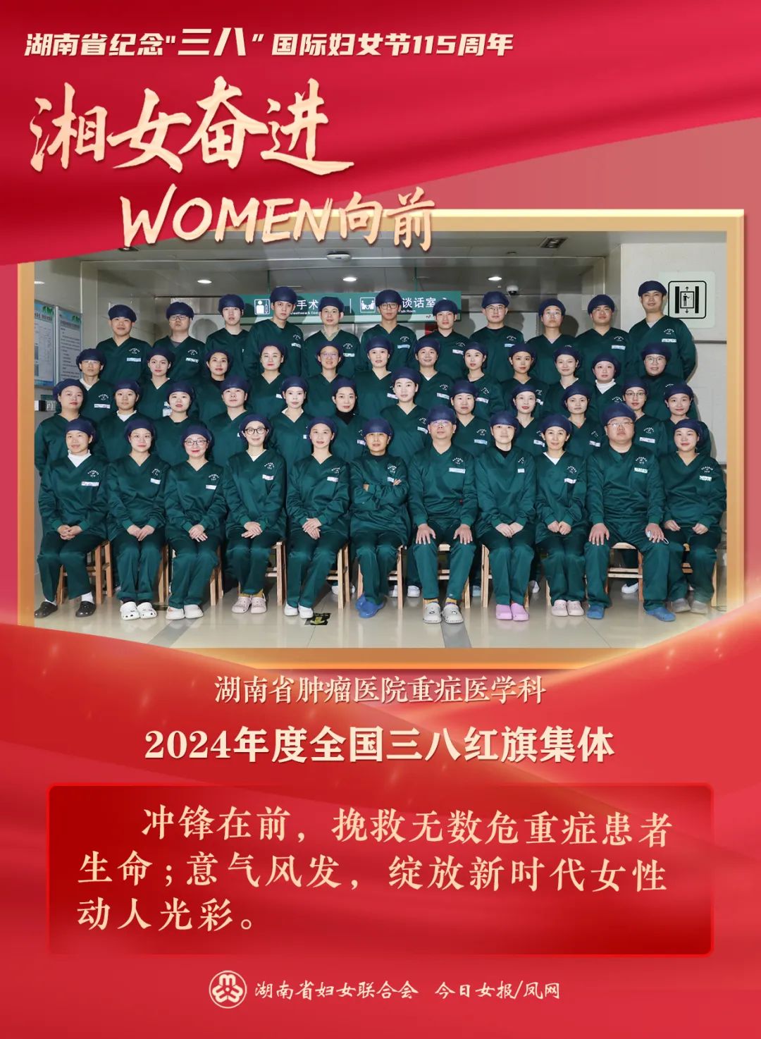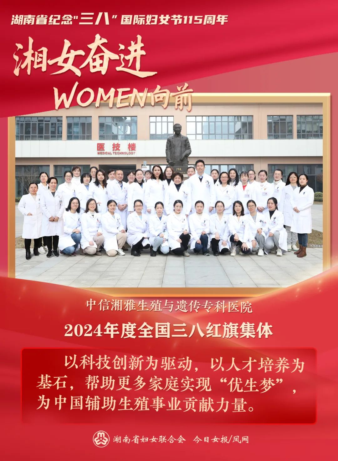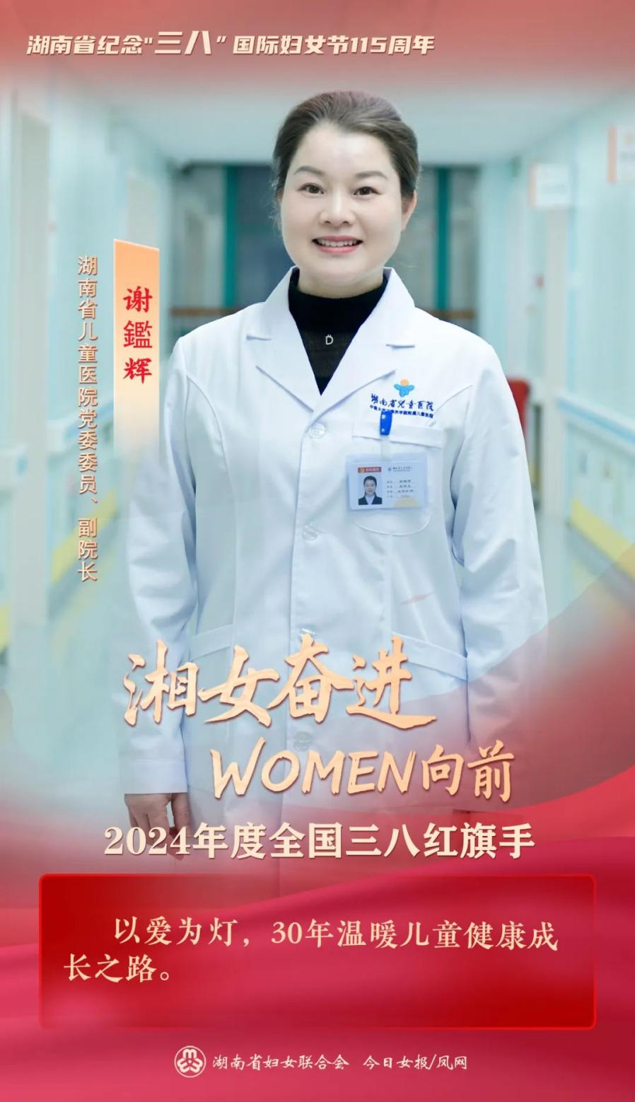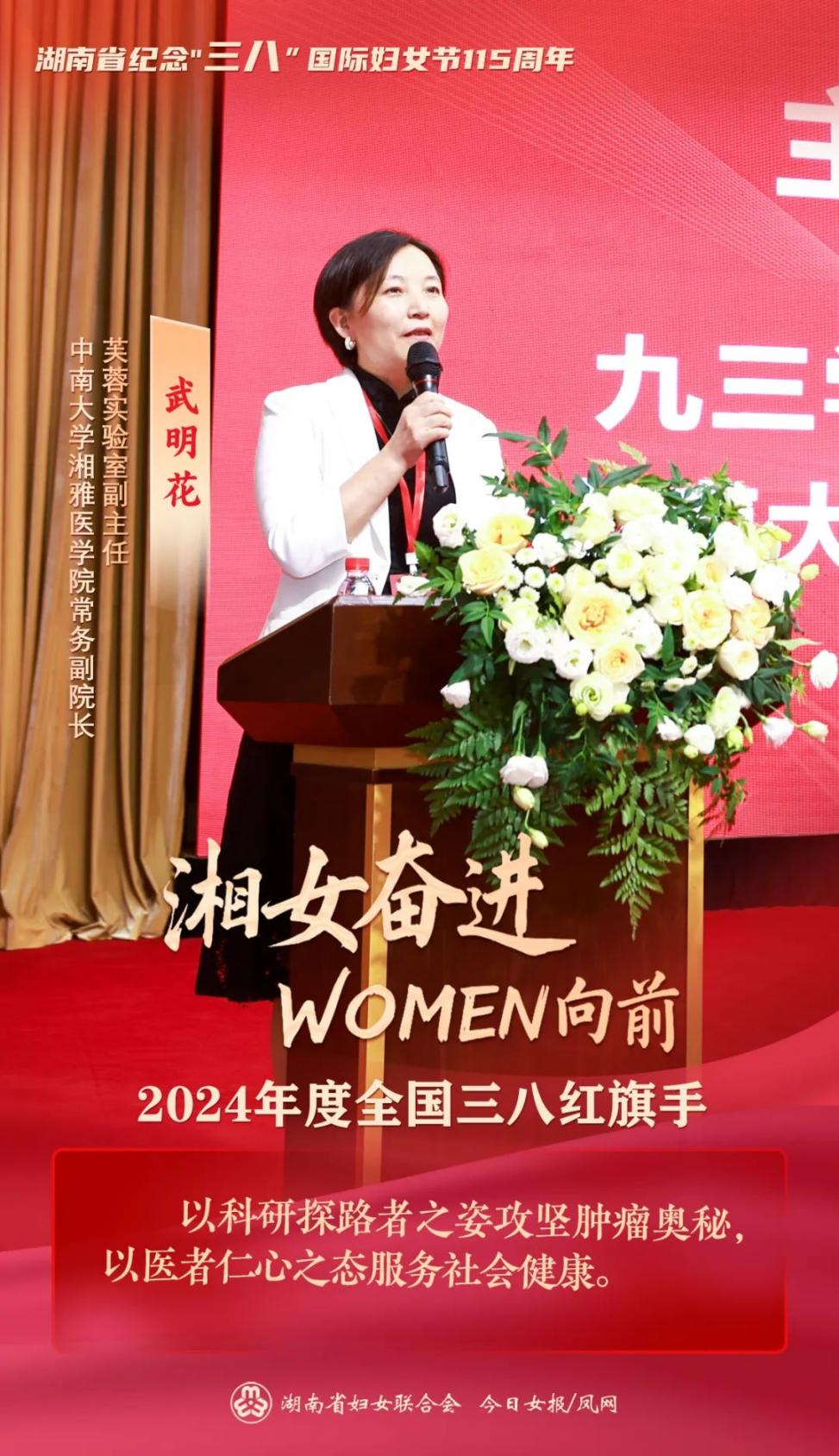 3月6日,湖南省纪念“三八”国际妇女节115周年主题分享会在长沙举行。会上,全国三八红旗手芙蓉实验室副主任、谈球吧常务副院长武明花;湖南省儿童医院(谈球吧附属儿童医院)党委委员、副院长谢鑑辉;全国三八红旗集体中信湘雅生殖与遗传专科医院、湖南省肿瘤医院(谈球吧附属肿瘤医院)重症医学科受到表彰。