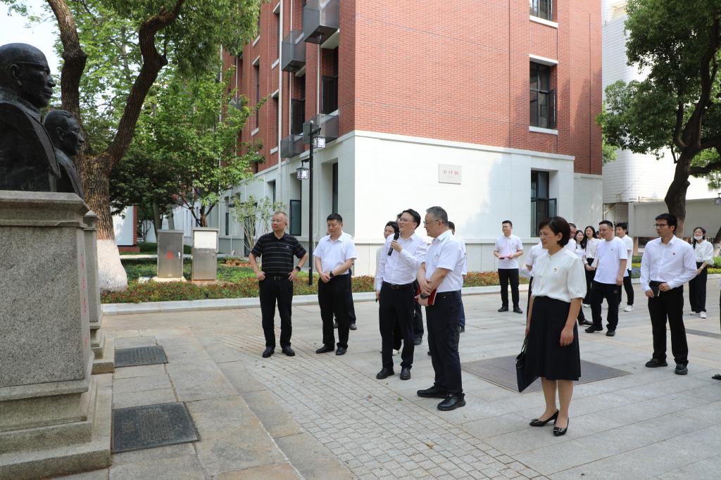 向波带领一行人先后参观了开福校区新校门、铜像广场、湘雅院史文化墙以及福庆礼堂,通过珍贵的历史影像与文献资料,系统回顾了湘雅医学院110年办学历史中“公勇勤慎、诚爱谦廉”的文化传承。参观过程中,他重点介绍了2024年开福校区湘雅校园提质改造工程实施情况,感谢后勤保障部修建服务中心在校园美化建设中作出的大力支持。