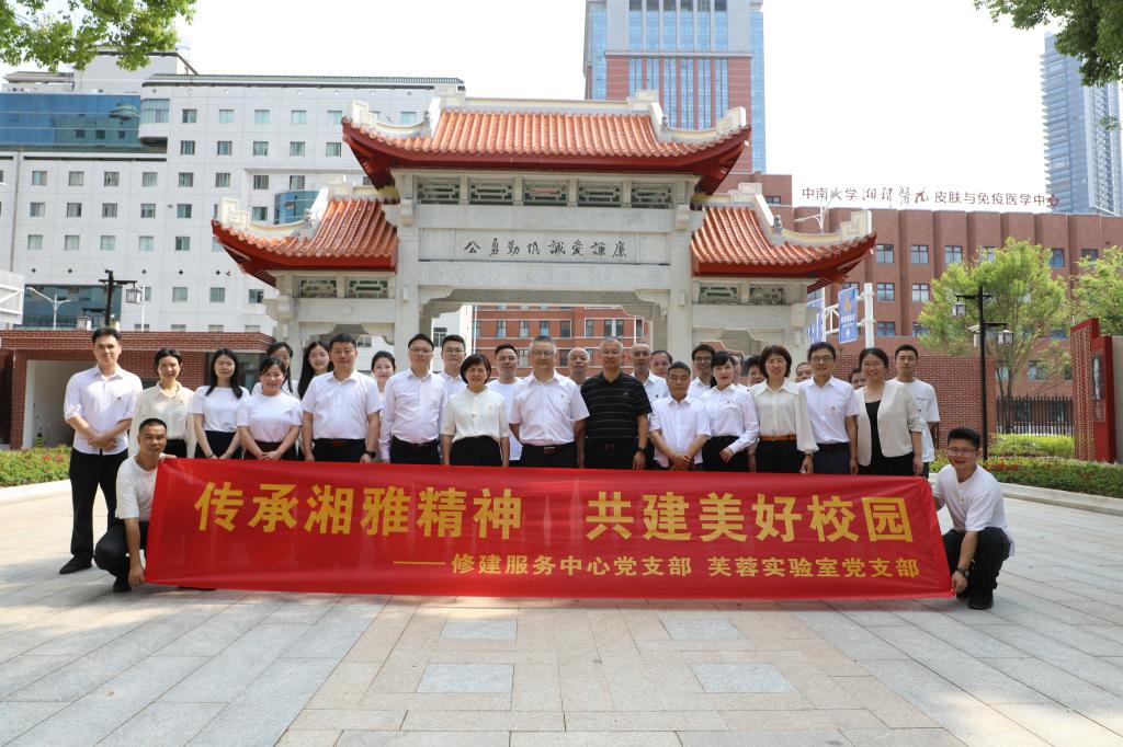 4月21日下午,芙蓉实验室党支部与中南大学后勤保障部修建服务中心党支部联合开展“传承湘雅精神共建美好校园”深入贯彻中央八项规定精神学习教育共联活动。后勤保障部党委书记乔硕功、湘雅医学院党委副书记吴世明、后勤保障部副部长谭梦花、芙蓉实验室常务副主任向波等领导及双方党支部全体成员、部分工程管理人员出席此次共联活动。