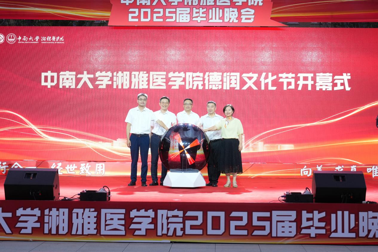 陈翔、李景升、黎志宏、朱利勇、武明花等领导共同为德润文化节开幕仪式揭幕。湘雅医学院作为中南大学立德树人机制综合改革试点工作的重要组成部分,为此设计了12项重大活动,通过文化节的形式贯穿全年,涵盖德智体美劳五大育人体系,以“德润”为主题,旨打造医学树人新范式。