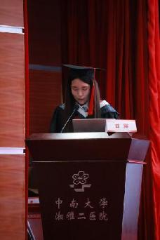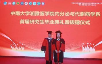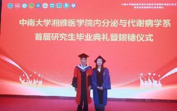 毕业生代表甘露博士以“坚持、诚信、追求完美、持续学习”为关键词,回顾求学生涯中“凌晨实验室的灯光”“病房里的医患故事”“导师深夜回复的批注”,感恩代谢内分泌科老师与同窗的相助,并呼吁“将湘雅精神融入每一次诊疗、每一项研究”,引发全场共鸣。随后,一段惊喜祝福视频温暖播放:导师们寄语“医路漫漫,仁心为灯”,师弟师妹们追忆“代谢楼的晨读、科教楼的研讨”,父母们眼含热泪道“你穿白大褂的样子,是我们最大的骄傲”,现场温情满溢。活动尾声,毕业生们以一首《稻香》合唱为典礼添彩。婉转的歌声中,青春的热血与离别的不舍交织,勾勒出“医学生”到“医者”的成长画卷。