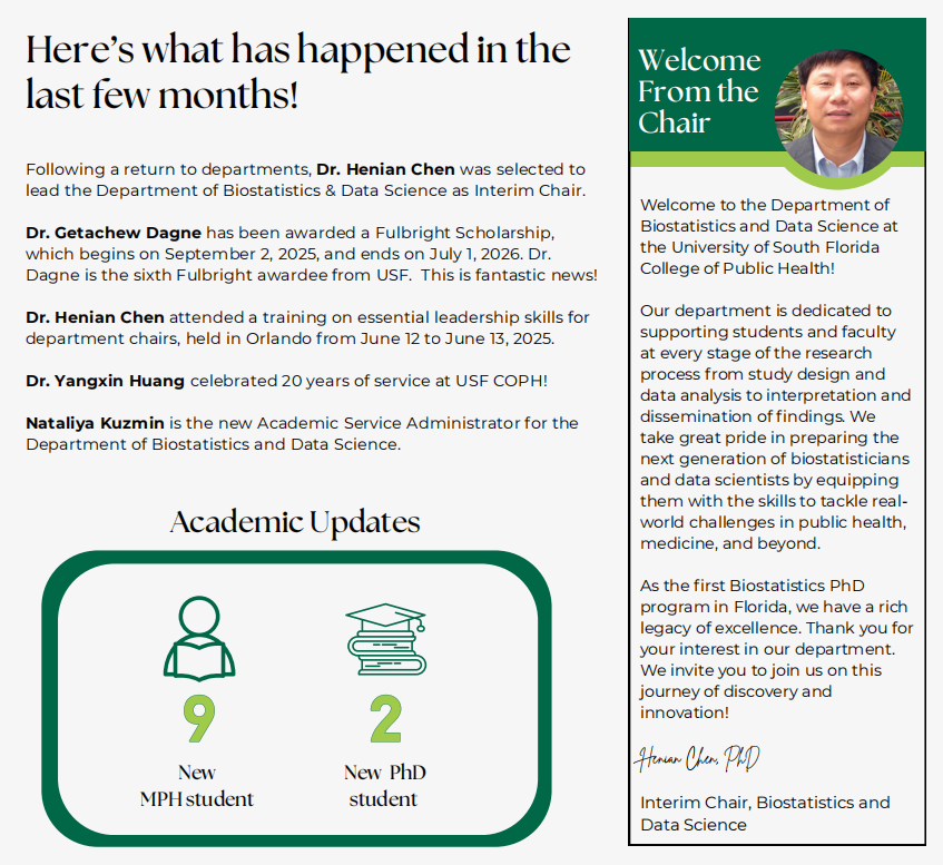 近日,美国南佛罗里达大学(USF)公共卫生学院宣布,我校80级杰出校友陈和年(Henian Chen)教授被任命为生物统计学与数据科学系系主任。