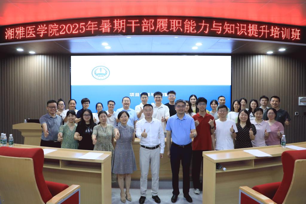 2025年7月7日至8日,湘雅医学院在开福校区元定楼四楼孝骞厅成功举办了“2025年暑期干部履职能力与知识提升培训班”。本次培训旨在进一步提升教职工的创新管理水平和团队协作能力,为我校医学领域高质量发展注入新动能。湘雅医学院领导班子,院机关各办公室、芙蓉实验室、实验动物学部全体教职工参加了此次培训。
