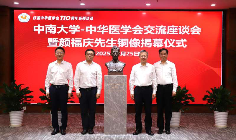 7月25日,中南大学-中华医学会交流座谈会暨颜福庆先生铜像揭幕仪式在中华医学会举行。中华医学会党委书记、副会长周明坚,中南大学党委常委、常务副校长、湘雅医学院院长陈翔,中南大学党委常委、副校长黎志宏等出席相关活动。活动由中华医学会原副秘书长姜永茂主持。