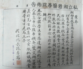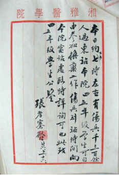 1937年11月张孝骞号召湘雅医学院五、六年级学生为抗日伤兵换药的通知