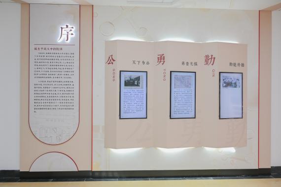 文化长廊沉浸式地展现湘雅深厚的文化底蕴与鲜明的精神特质,以湘雅院训“公勇勤慎 诚爱谦廉”为主题展开,精心梳理了湘雅人在艰苦创业、教书育人、服务群众过程中体现湘雅精神的故事,阐释院训对湘雅人的重要意义。设计上,注重传统与现代相结合,运用图文展板、多媒体等多种形式,打造了一个可观、可感、可思的开放式文化空间,增强了参观的互动性与体验感。