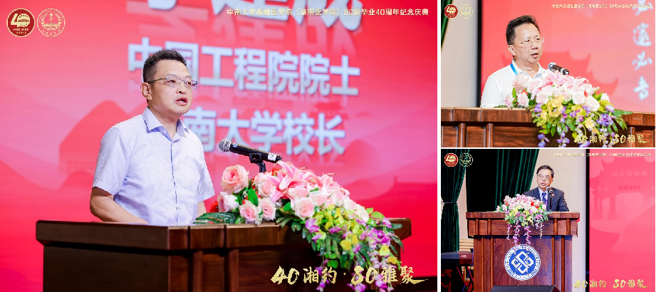 湘雅医学院常务副院长武明花、湘雅公共卫生学院院长胡国清、湘雅医学院副院长黄耿文、中南大学校友总会副秘书长曾琳等出席纪念庆典。