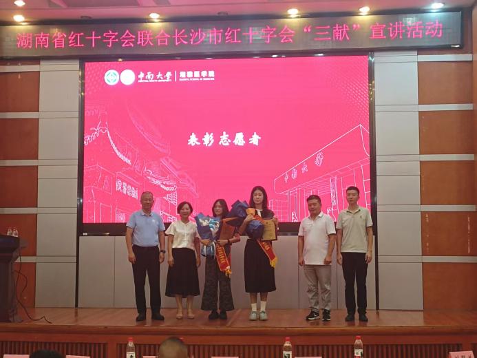 随后,长沙市红十字会秘书长姜新任致辞。他指出,谈球吧作为医学教育的摇篮,肩负着培育卓越医学人才、推动医学事业发展的神圣使命。多年来,湘雅医学院通过成立无偿献血和施予受器官捐献志愿服务队展现公益担当,展现出推动健康公益和“三献”事业发展的不懈努力和坚定决心。姜秘书长还提到了长沙红十字会与湘雅医学创始人之一的颜福庆先生的渊源,介绍了红十字会事业和“三献”宣讲工作的重要性。他坚信,在湖南省红十字会和长沙市红十字会的指导支持下,湘雅医学院将始终秉持“人道、博爱、奉献”的红十字会精神,积极投身健康公益事业,为更多生命带来希望。
