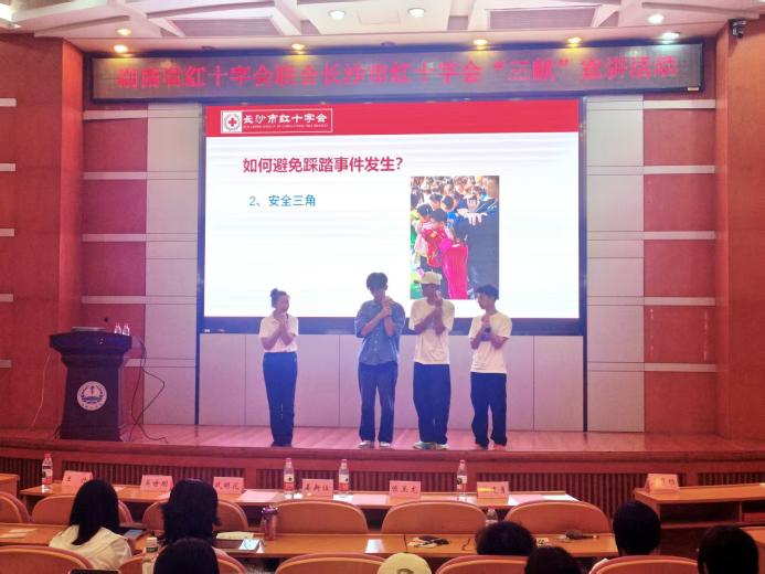 随后,长沙市红十字救护教师王慧畅围绕“预防拥挤踩踏、户外失温、动物叮咬处置”进行专业培训,通过案例分析与实操演示,提升师生应急处理能力。这些应急知识对于在日常生活中保护自己和他人的生命安全至关重要,王老师寄语现场观众,希望大家能够牢记这些知识,遇到类似情况时能够冷静应对,正确处理。