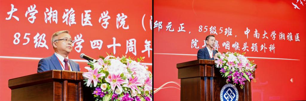 庆典上,黎志宏副校长对1985级校友们返校表示热烈欢迎。他如数家珍地向校友们分享了学校近年来在科技创新奖项、科研成果转化、世界大学排名中的发展成就,并介绍了湘雅医学院在医学教育、科学研究和国际交流等多个领域的新突破和新成绩。他表示,党的二十届四中全会,明确了“十五五”时期经济社会发展主要目标,为医学教育改革发展指明了方向。学校将以此为契机,深化教育综合改革,纵深推进教育、科技、人才“三位一体”改革,奋力打造特色鲜明的世界一流大学和医学院。他向全体校友发出诚挚邀约:热忱欢迎大家与母校同频共振,在人才培养、科研攻关、产业转化、国际交流等多维度开展深度合作,让湘雅精神薪火相传,共同推进湘雅医学事业发展再上新台阶。