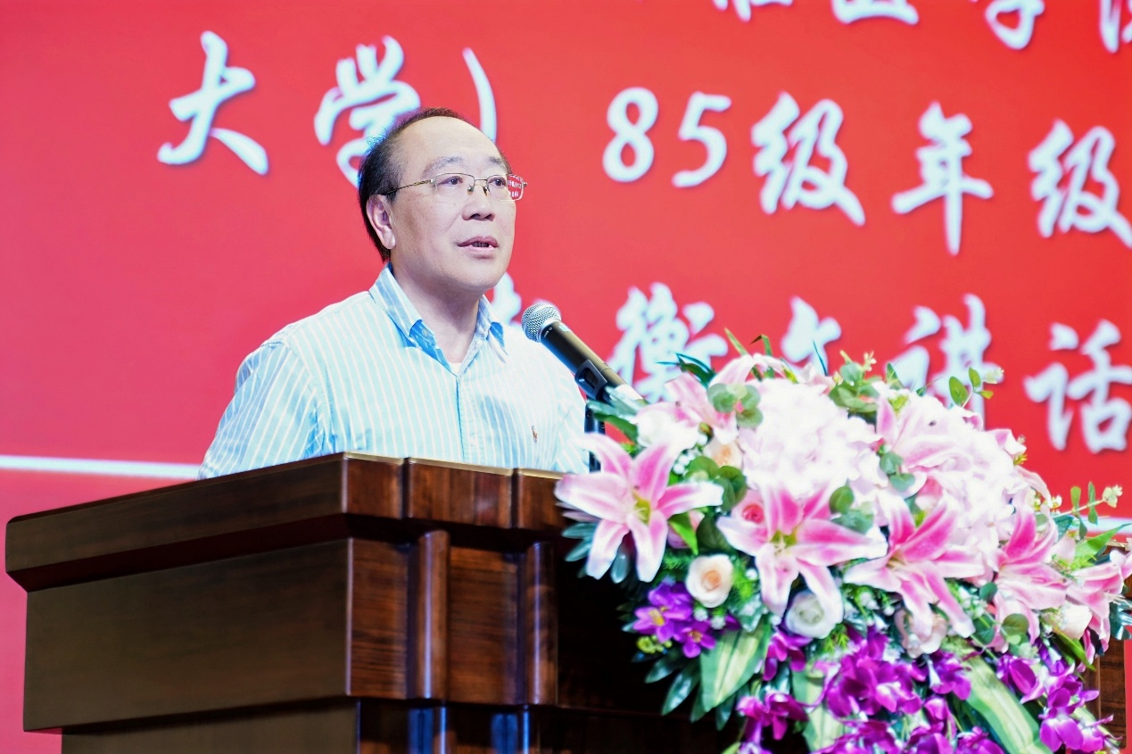 会议伊始,1985级同学会会长邱元正带着满心热忱,向到场的领导、老师和同学们表达欢迎。他缓缓追忆起40年前的青春岁月,那些一起上课钻研、一同运动欢笑的校园日常,瞬间勾起了所有人的共同回忆,让现场萦绕着满满的同窗温情。