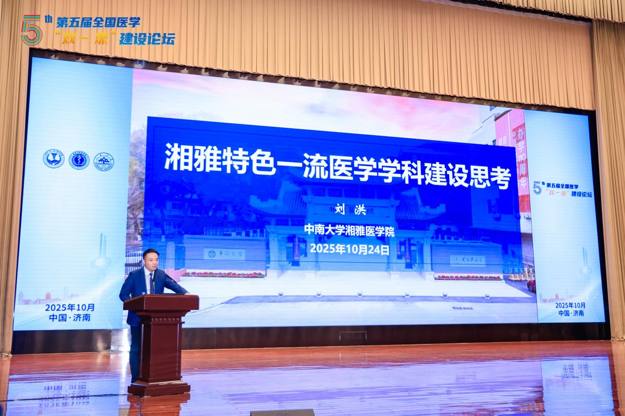 近日,第五届全国医学“双一流”建设论坛在山东济南召开,国务院学位委员会办公室学科建设处处长杨秋波,医学“双一流”建设联盟理事长、中国工程院院士詹启敏等领导专家出席论坛并致辞。中南大学常务副校长、湘雅医学院院长陈翔,湘雅医学院副院长刘洪等出席并参与多项重要活动。本次论坛由医学“双一流”建设联盟、北京大学医学部共同主办,山东大学承办,来自全国30多所高校及医院的400余名医学教育、医疗卫生领域的知名专家、高校相关负责人及一线管理者参加本次论坛。