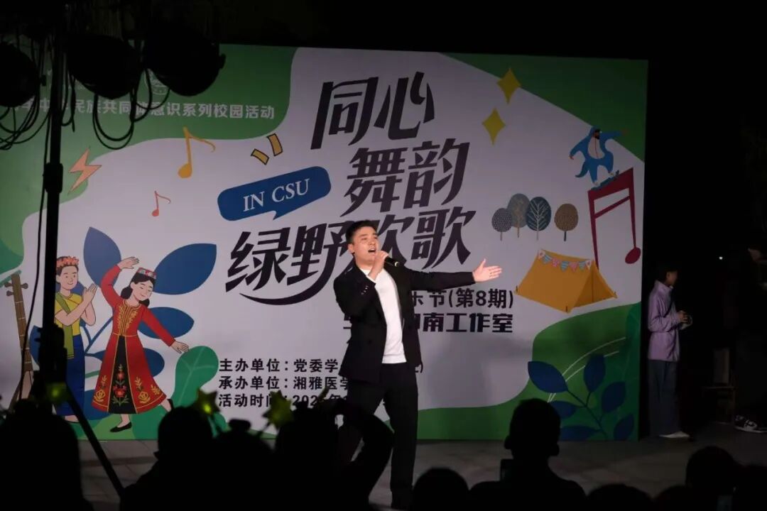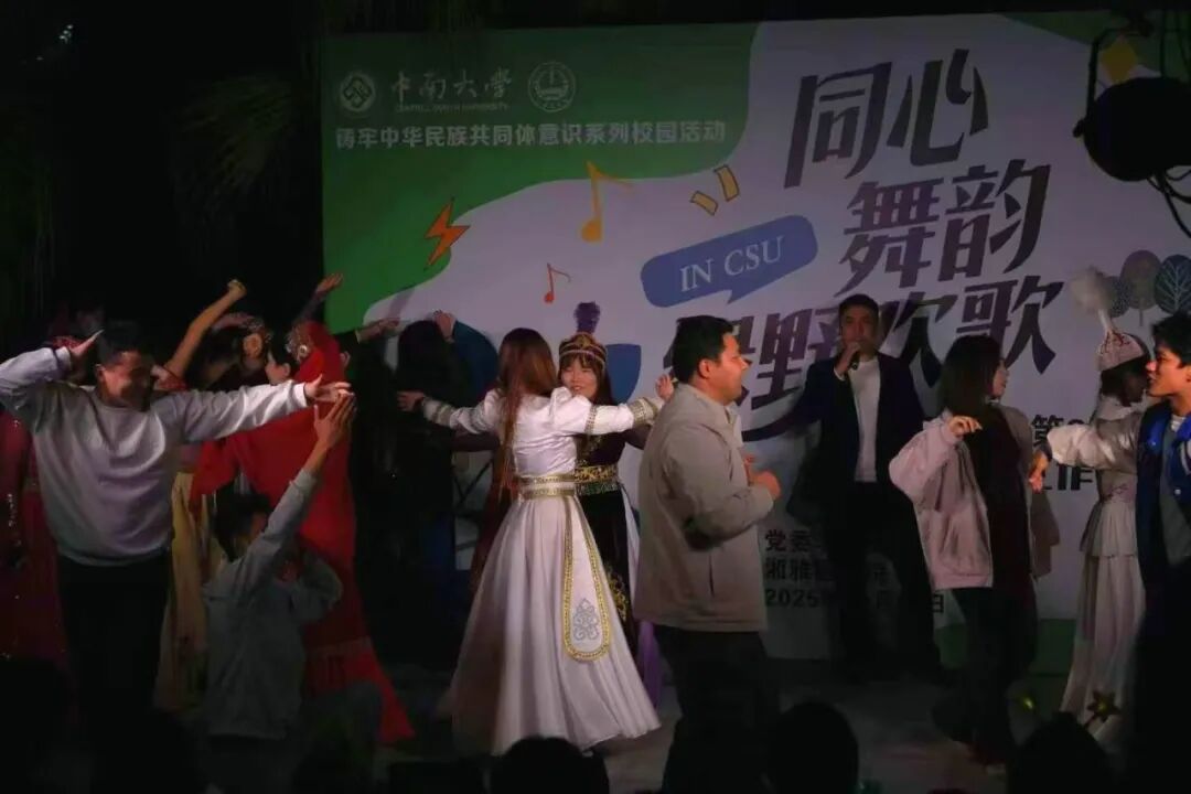 2025年11月15日,第八季56度中南草地音乐节,在中南大学杏林校区宿舍区小花园顺利举办。本次音乐节由王淇、耿鑫、阿茹娜、娜孜依拉四位同学主持。这场以“铸牢中华民族共同体意识”为内核的文化盛宴,通过美食、服饰、手作和歌舞等多元形式,让各民族文化在交融中绽放光彩,也让友谊的种子在欢笑中生根发芽。
