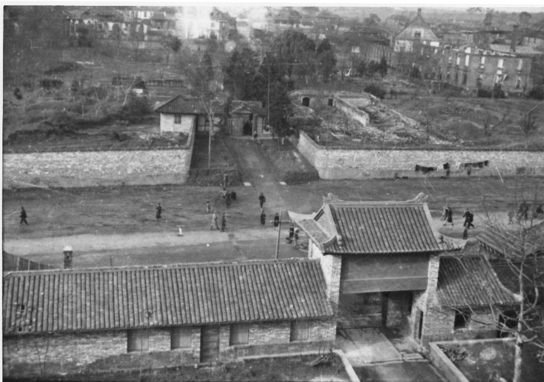 在湘雅红楼顶上俯瞰被日军焚毁后的校园景象